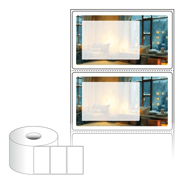 출력용 롤타입 스티커 디자인 라벨지, 규격코드: RS9052, 디자인코드: DA1461(아늑한 실내, 겨울의 창가에서), 90 x 52 (mm) , 지관: 40mm
