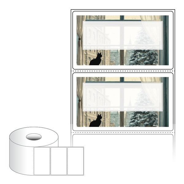 출력용 롤타입 스티커 디자인 라벨지, 규격코드: RS9052, 디자인코드: DA1494(오후엔 눈 그리고, 고양이), 90 x 52 (mm) , 지관: 40mm