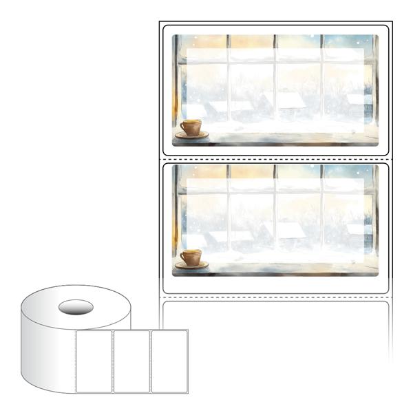 출력용 롤타입 스티커 디자인 라벨지, 규격코드: RS9052, 디자인코드: DA1510(겨울창가에서1), 90 x 52 (mm) , 지관: 40mm