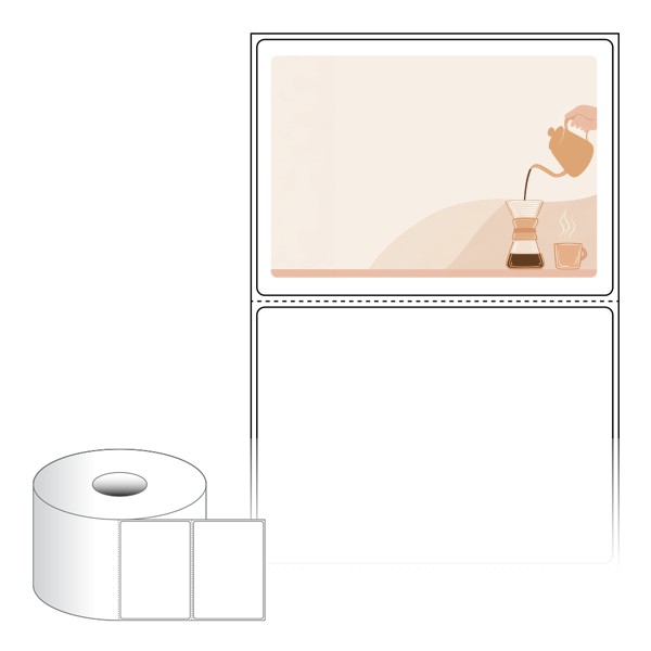 출력용 롤타입 스티커 디자인 라벨지, 규격코드: RS9065, 디자인코드: DA1413(커피와 함께 힐링타임), 90 x 64.733 (mm) , 지관: 40mm