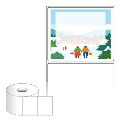 출력용 롤타입 스티커 디자인 라벨지, 규격코드: RS9073, 디자인코드: DA1569(설레는 설날의 아침), 90 x 73.2 (mm) , 지관: 40mm