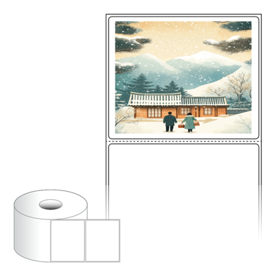 출력용 롤타입 스티커 디자인 라벨지, 규격코드: RS9073, 디자인코드: DA1575(설, 따뜻한 귀향), 90 x 73.2 (mm) , 지관: 40mm