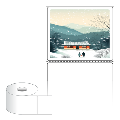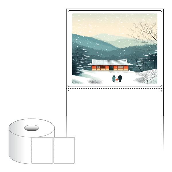 출력용 롤타입 스티커 디자인 라벨지, 규격코드: RS9073, 디자인코드: DA1577(귀향, 눈내리는 설날), 90 x 73.2 (mm) , 지관: 40mm