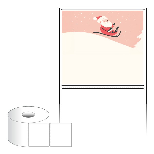 출력용 롤타입 스티커 디자인 라벨지, 규격코드: RS9082, 디자인코드: DA1482(산타 신난다), 90 x 81.667 (mm) , 지관: 40mm