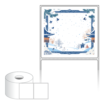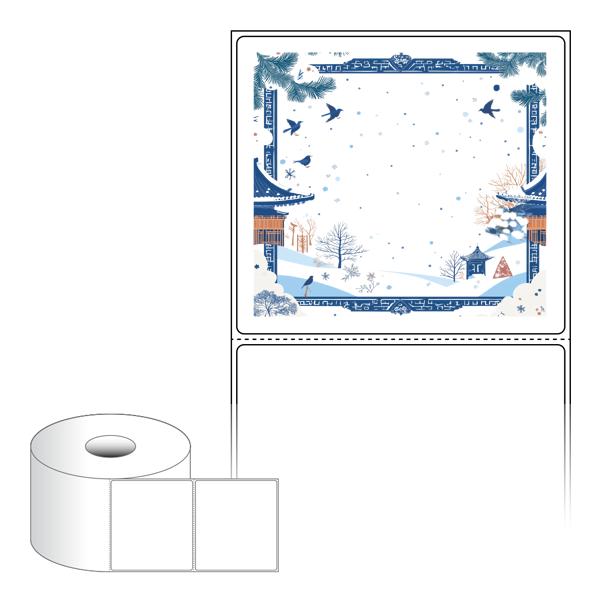 출력용 롤타입 스티커 디자인 라벨지, 규격코드: RS9082, 디자인코드: DA1514(겨울 프레임, 설날), 90 x 81.667 (mm) , 지관: 40mm