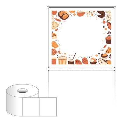 출력용 롤타입 스티커 디자인 라벨지, 규격코드: RS9082, 디자인코드: DA1516(겨울이라 더 달콤한 간식들), 90 x 81.667 (mm) , 지관: 40mm