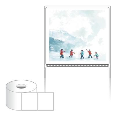 출력용 롤타입 스티커 디자인 라벨지, 규격코드: RS9082, 디자인코드: DA1522(추워도 즐거운 아이들의 겨울), 90 x 81.667 (mm) , 지관: 40mm