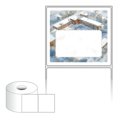 출력용 롤타입 스티커 디자인 라벨지, 규격코드: RS9082, 디자인코드: DA1535(겨울방학 학교에서 러브레터), 90 x 81.667 (mm) , 지관: 40mm