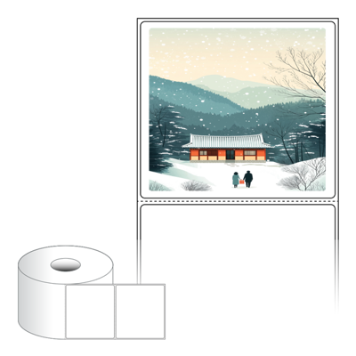 출력용 롤타입 스티커 디자인 라벨지, 규격코드: RS9082, 디자인코드: DA1577(귀향, 눈내리는 설날), 90 x 81.667 (mm) , 지관: 40mm