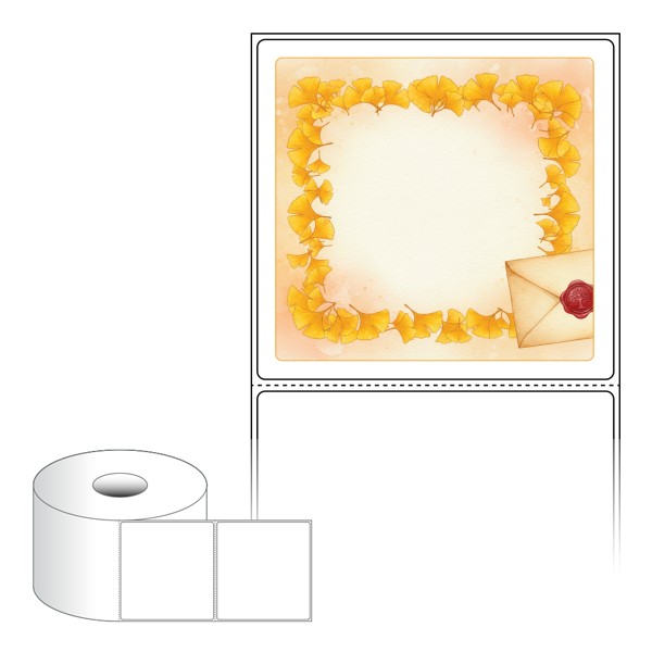 출력용 롤타입 스티커 디자인 라벨지, 규격코드: RS9086, 디자인코드: DA1426(은행잎 편지), 90 x 85.9 (mm) , 지관: 40mm