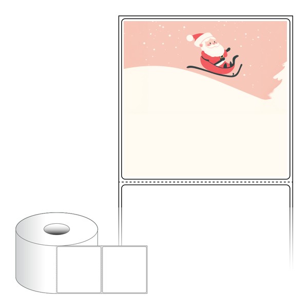 출력용 롤타입 스티커 디자인 라벨지, 규격코드: RS9086, 디자인코드: DA1482(산타 신난다), 90 x 85.9 (mm) , 지관: 40mm