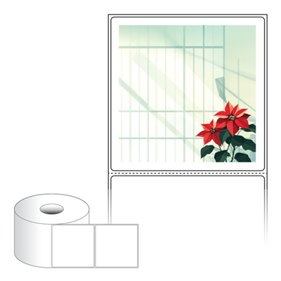 출력용 롤타입 스티커 디자인 라벨지, 규격코드: RS9090, 디자인코드: DA1477(포인세치아와 함께한 겨울), 90 x 90.133 (mm) , 지관: 40mm