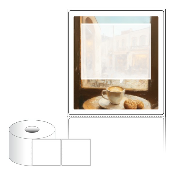 출력용 롤타입 스티커 디자인 라벨지, 규격코드: RS9099, 디자인코드: DA1479(레트로 감성 카페에서), 90 x 98.6 (mm) , 지관: 40mm