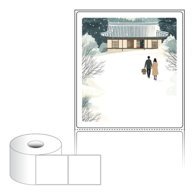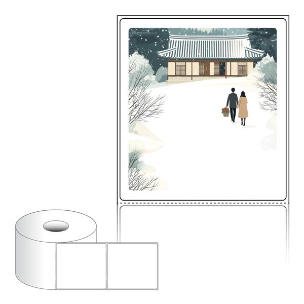 출력용 롤타입 스티커 디자인 라벨지, 규격코드: RS9099, 디자인코드: DA1580(눈내린 귀향의 따뜻한 길), 90 x 98.6 (mm) , 지관: 40mm