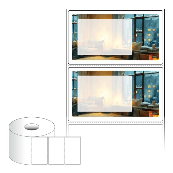 출력용 롤타입 스티커 디자인 라벨지, 규격코드: RS9554, 디자인코드: DA1461(아늑한 실내, 겨울의 창가에서), 95 x 54 (mm) , 지관: 40mm
