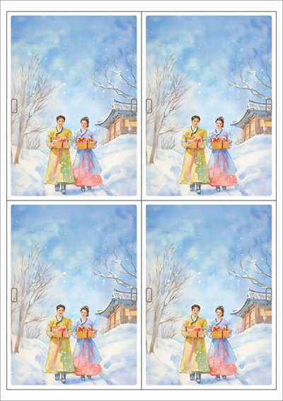 디자인된 A4 택 출력용 비점착 라벨, 규격코드: TLH0042, 디자인코드: DA1519(감사의 마음을 담은 선물을 드려요), 100 x 140 (mm)