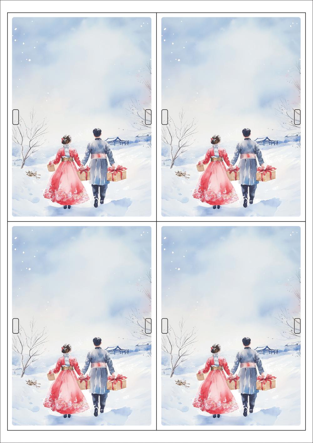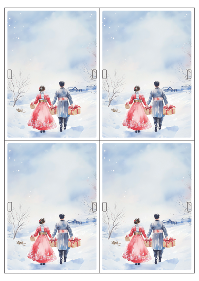디자인된 A4 택 출력용 비점착 라벨, 규격코드: TLH0042, 디자인코드: DA1521(새해 복 많이 받으세요), 100 x 140 (mm)