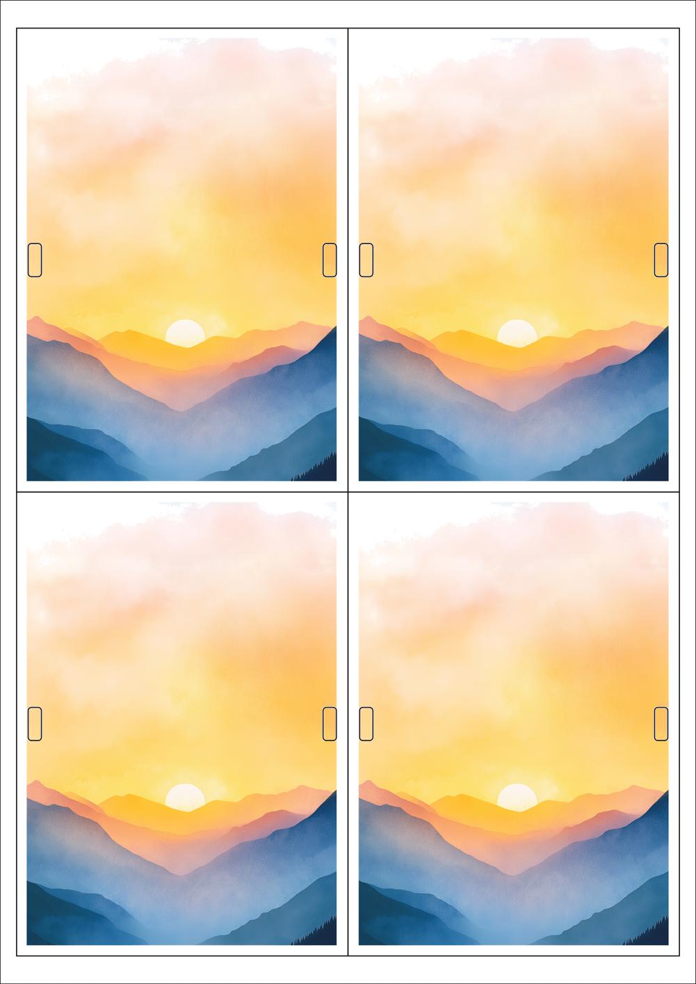 디자인된 A4 택 출력용 비점착 라벨, 규격코드: TLH0042, 디자인코드: DA1529(새해 첫 일출, 소원은...2), 100 x 140 (mm)