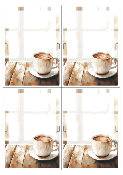 디자인된 A4 택 출력용 비점착 라벨, 규격코드: TLH0042, 디자인코드: DA1536(그 겨울의 찻집에서 생각나는 사람에게), 100 x 140 (mm)