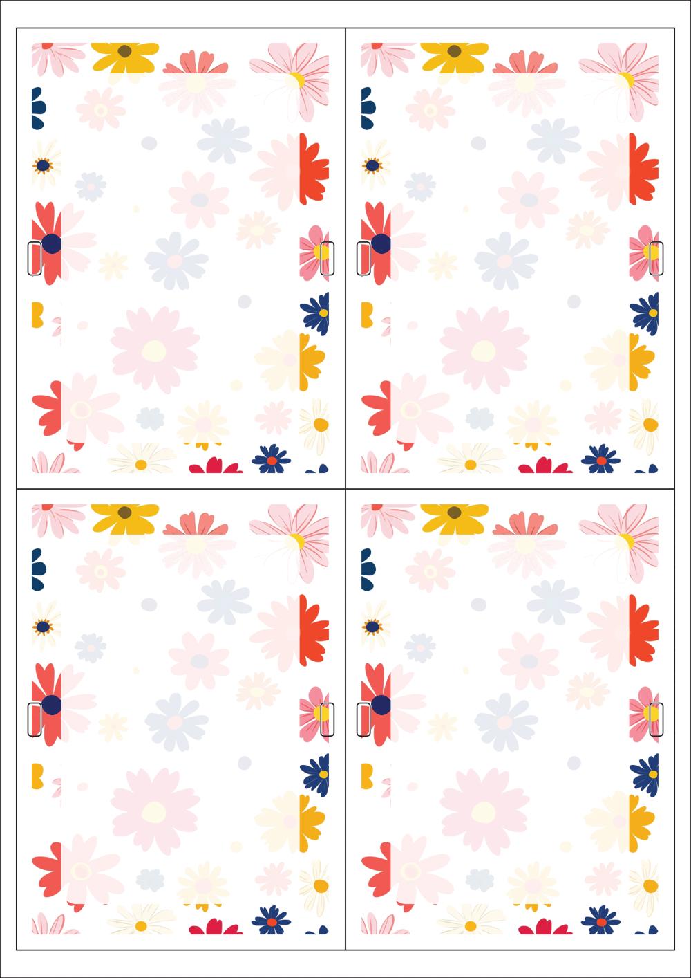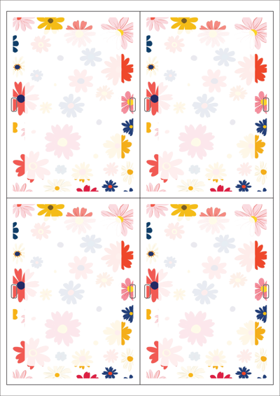 디자인된 A4 택 출력용 비점착 라벨, 규격코드: TLH0042, 디자인코드: DA1558(플라워 프레임2), 100 x 140 (mm)
