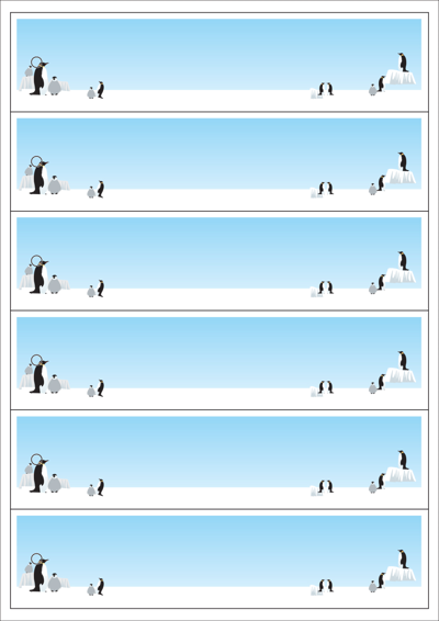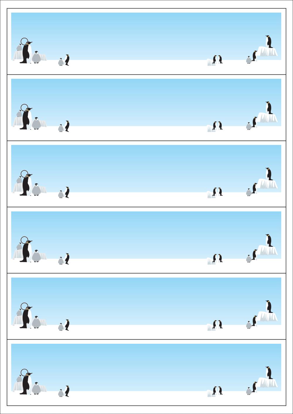 디자인된 A4 택 출력용 비점착 라벨, 규격코드: TLH0061, 디자인코드: DA1817(펭귄님들의 하루), 200 x 47.5 (mm)