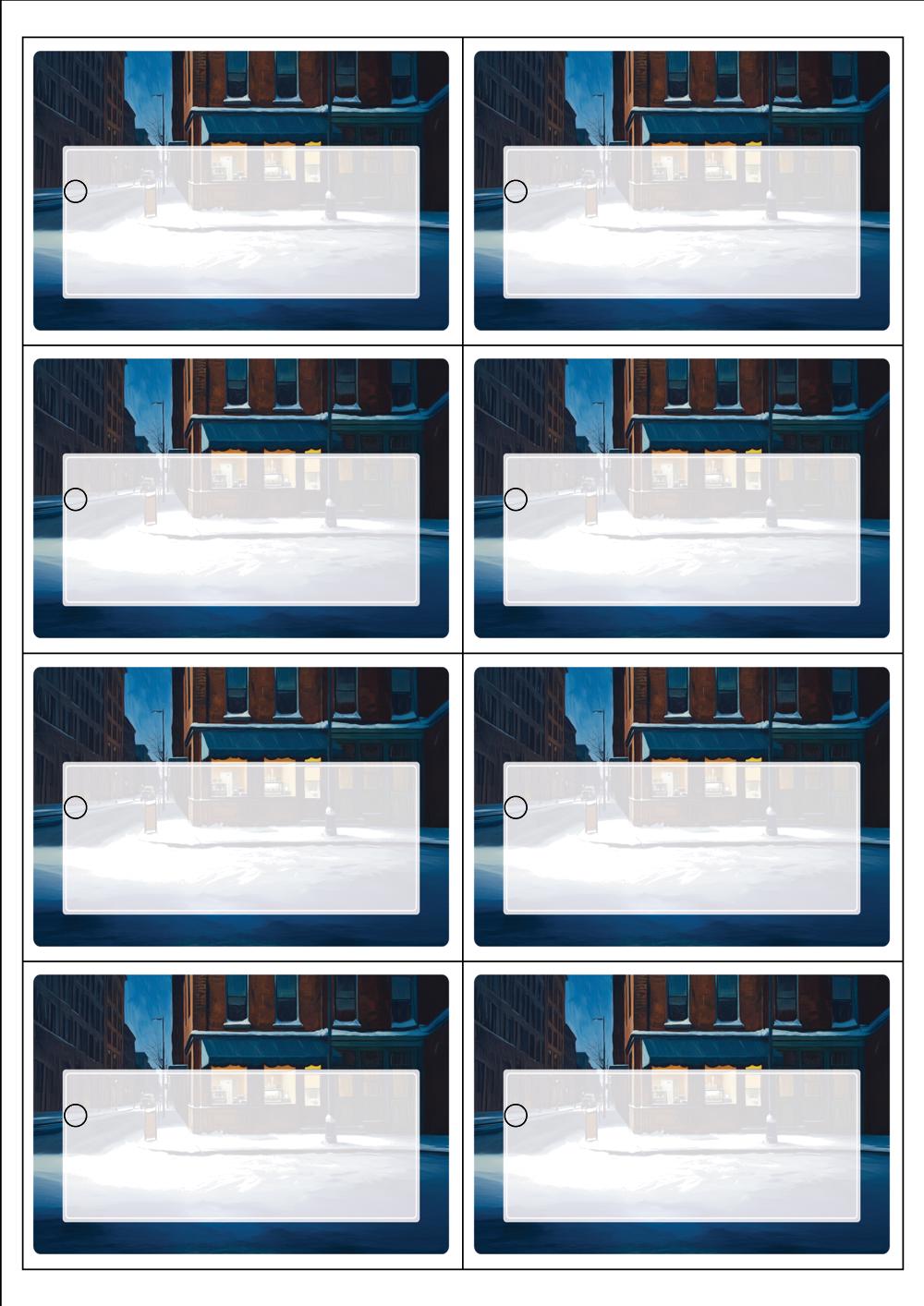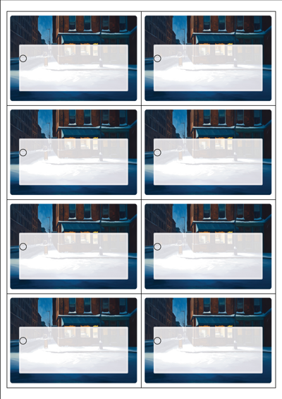 디자인된 A4 택 출력용 비점착 라벨, 규격코드: TLH0081, 디자인코드: DA1539(한겨울 호퍼씨네 카페에서1), 100 x 70 (mm)