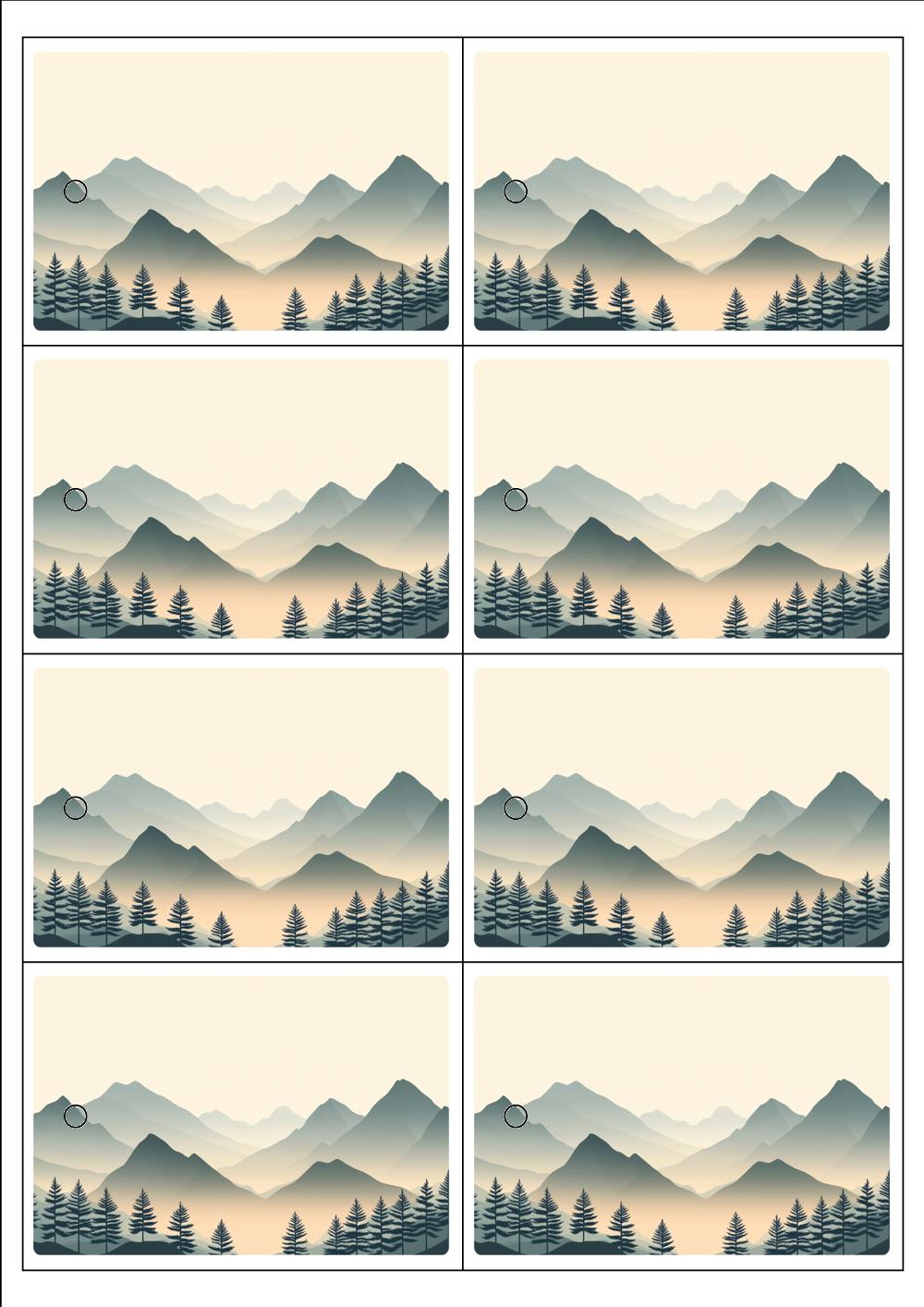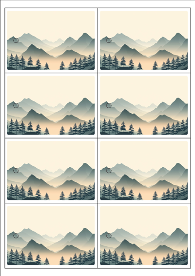 디자인된 A4 택 출력용 비점착 라벨, 규격코드: TLH0081, 디자인코드: DA1572(고요한 아침의 숲), 100 x 70 (mm)