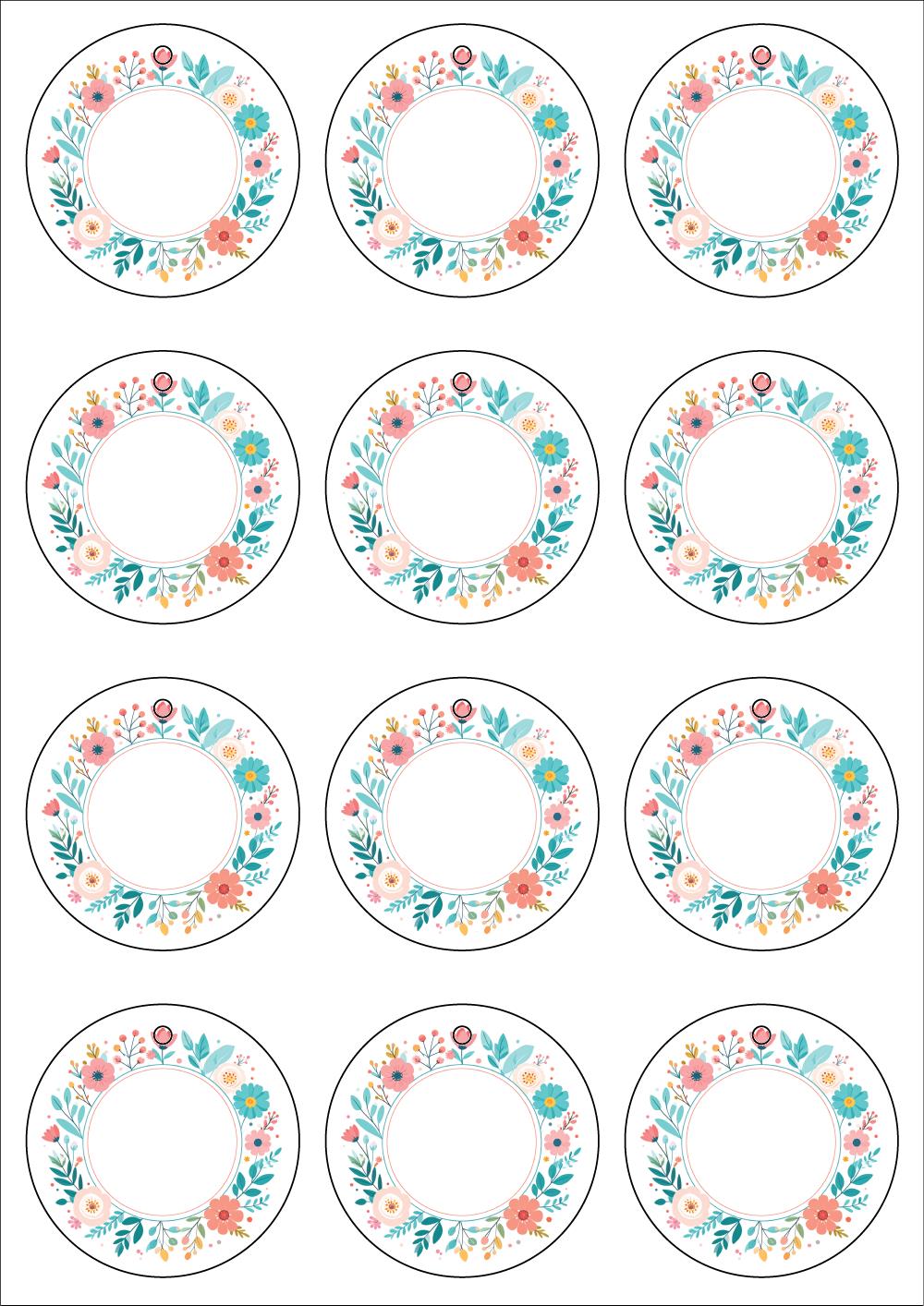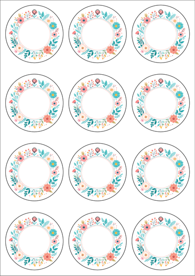 디자인된 A4 택 출력용 비점착 라벨, 규격코드: TLH0121, 디자인코드: DA1360(플라워 메세지), Φ62 (mm)