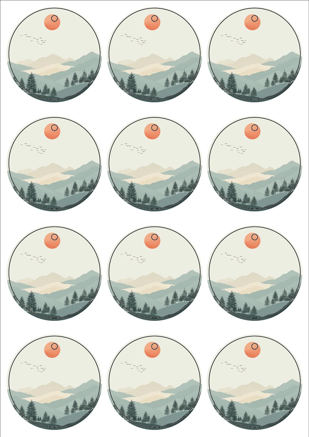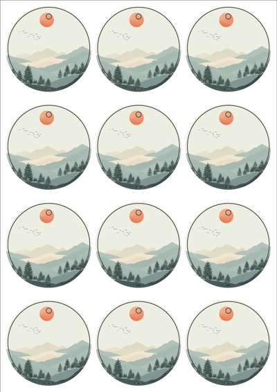 디자인된 A4 택 출력용 비점착 라벨, 규격코드: TLH0121, 디자인코드: DA1574(희망을 품은 붉은 해처럼), Φ62 (mm)