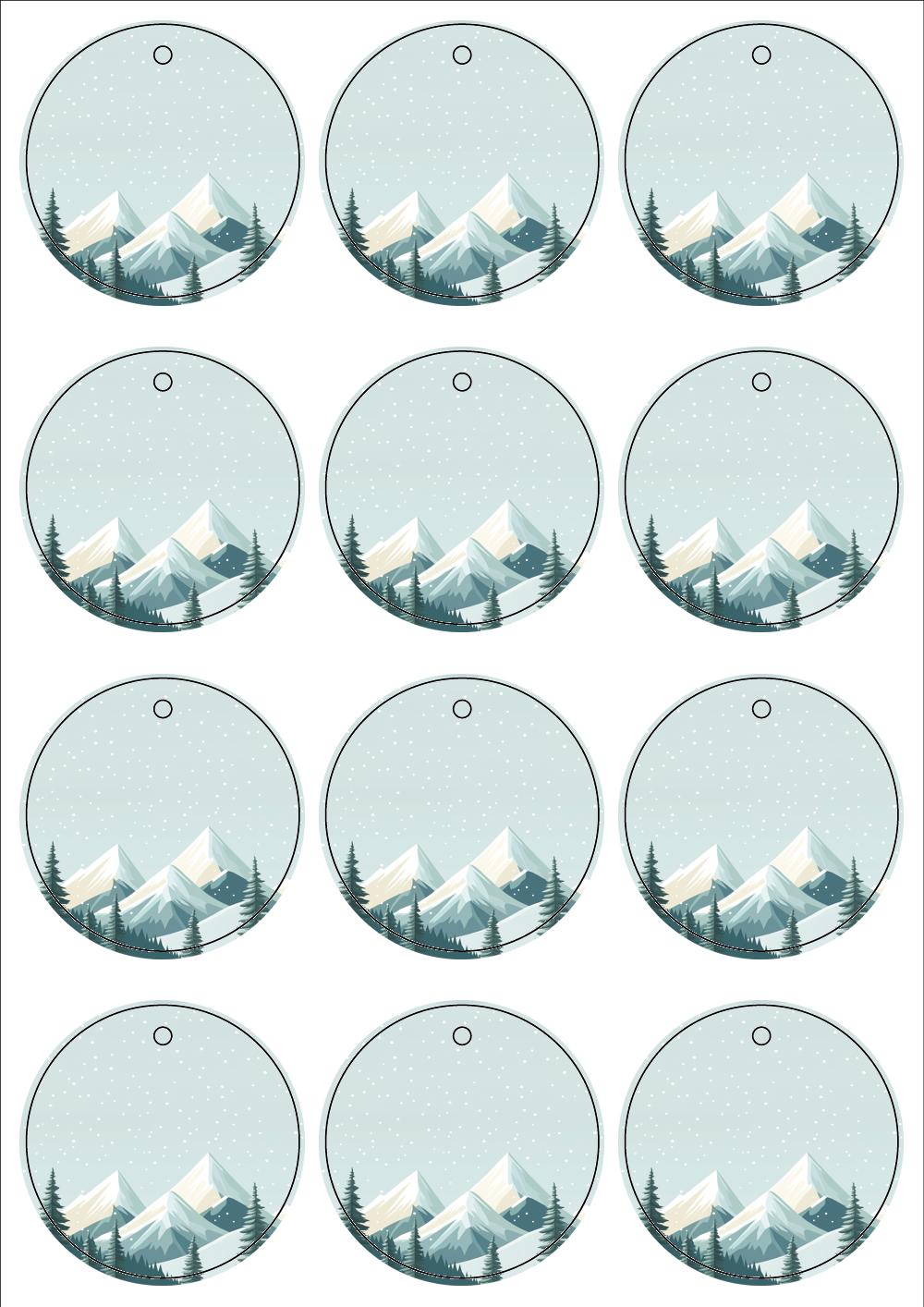 디자인된 A4 택 출력용 비점착 라벨, 규격코드: TLH0121, 디자인코드: DA1583(겨울 메세지), Φ62 (mm)