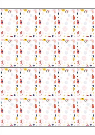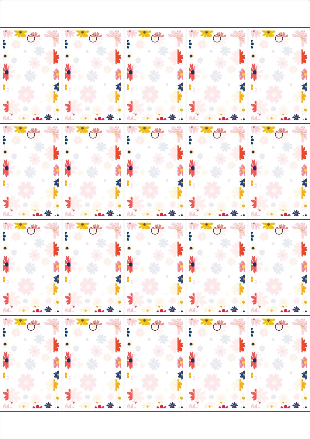 디자인된 A4 택 출력용 비점착 라벨, 규격코드: TLH0203, 디자인코드: DA1558(플라워 프레임2), 42 x 65 (mm)