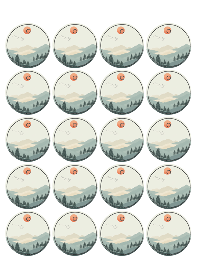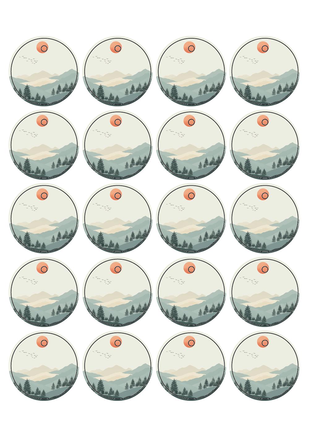 디자인된 A4 택 출력용 비점착 라벨, 규격코드: TLH0204, 디자인코드: DA1574(희망을 품은 붉은 해처럼), 45 x 45 (mm)