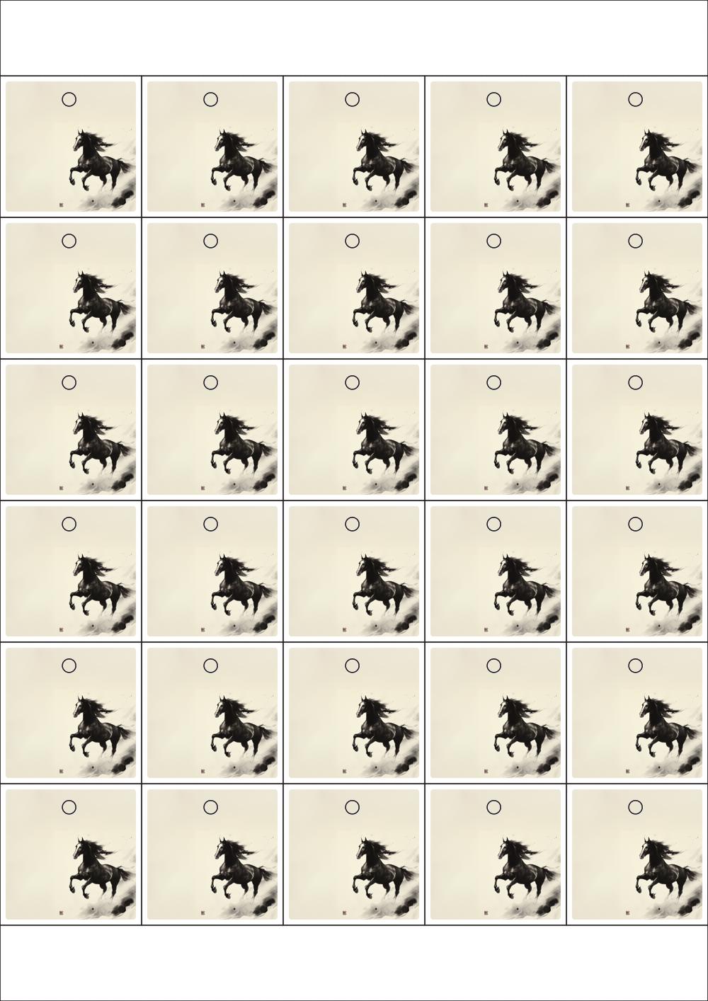 디자인된 A4 택 출력용 비점착 라벨, 규격코드: TLH0301, 디자인코드: DA1570(함께 달리는 희망찬 새해), 42 x 42 (mm)