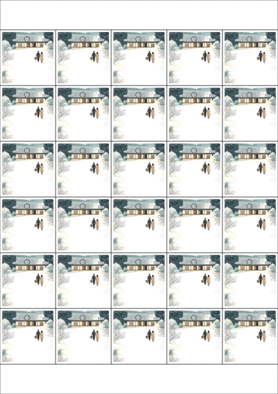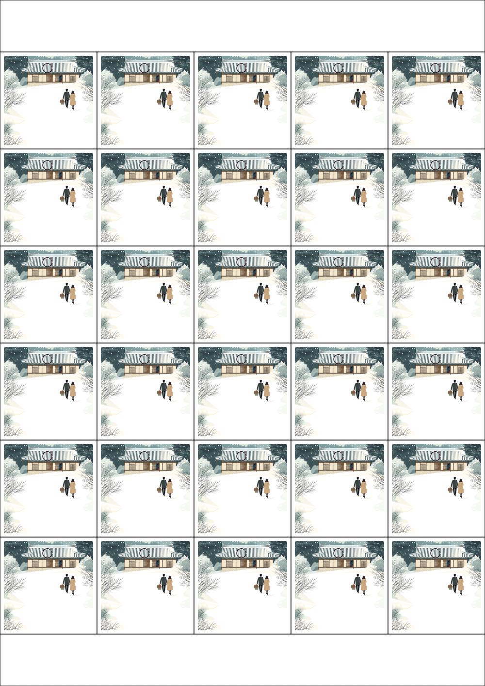 디자인된 A4 택 출력용 비점착 라벨, 규격코드: TLH0301, 디자인코드: DA1580(눈내린 귀향의 따뜻한 길), 42 x 42 (mm)