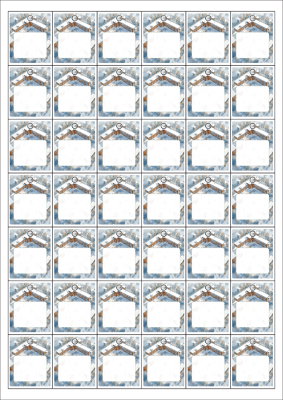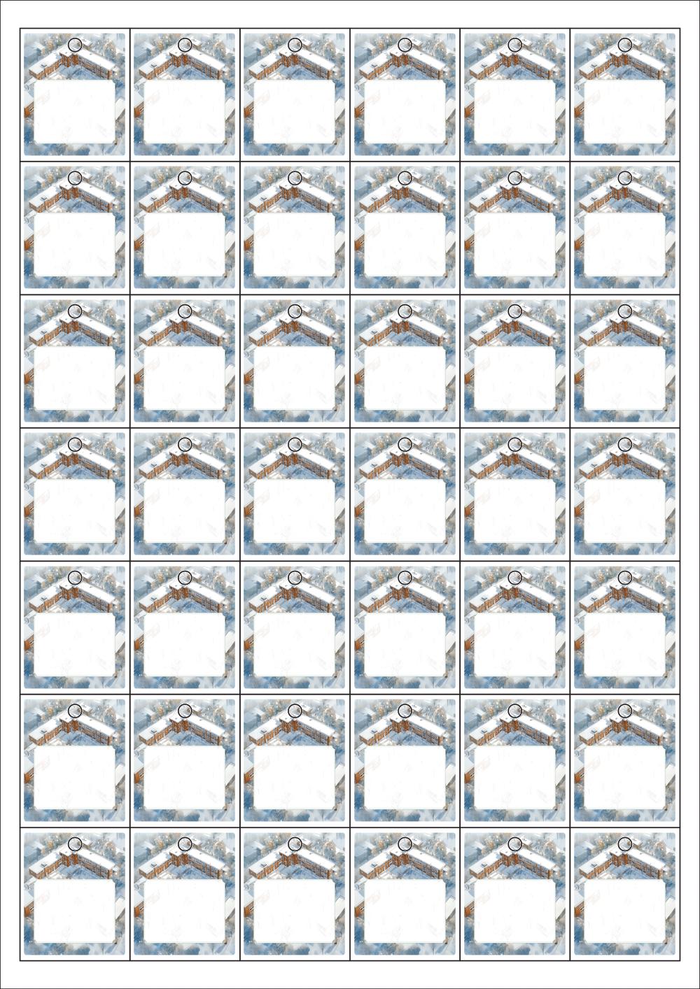 디자인된 A4 택 출력용 비점착 라벨, 규격코드: TLH0421, 디자인코드: DA1535(겨울방학 학교에서 러브레터), 33 x 40 (mm)