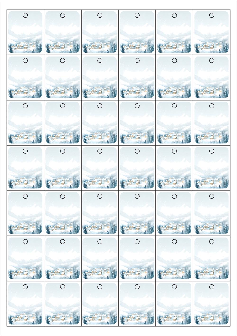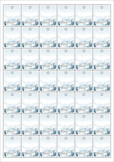 디자인된 A4 택 출력용 비점착 라벨, 규격코드: TLH0421, 디자인코드: DA1541(고요한 한겨울의 풍경을 보내드려요), 33 x 40 (mm)