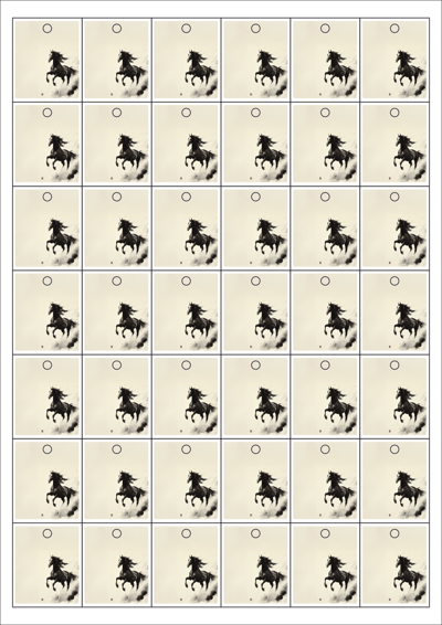 디자인된 A4 택 출력용 비점착 라벨, 규격코드: TLH0421, 디자인코드: DA1570(함께 달리는 희망찬 새해), 33 x 40 (mm)