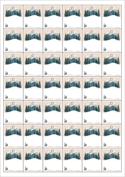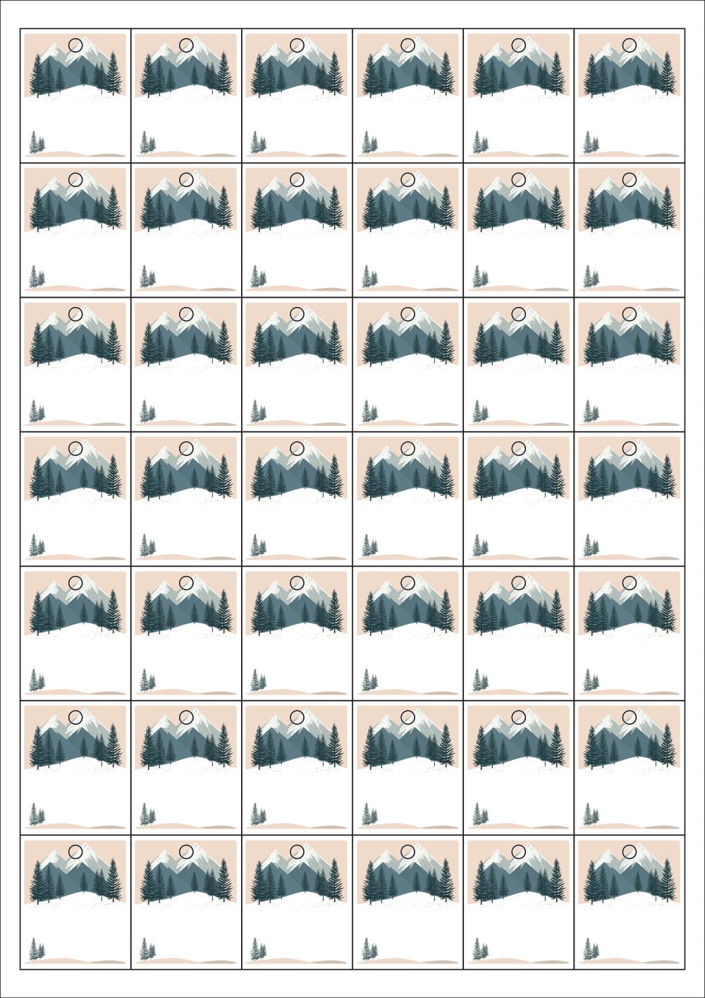 디자인된 A4 택 출력용 비점착 라벨, 규격코드: TLH0421, 디자인코드: DA1582(저 잘지내요~ 겨울산에 인사), 33 x 40 (mm)