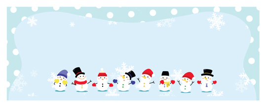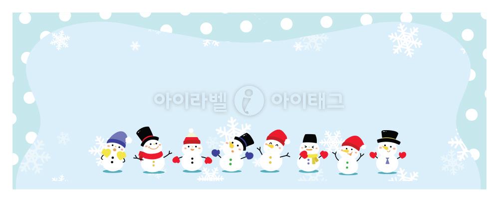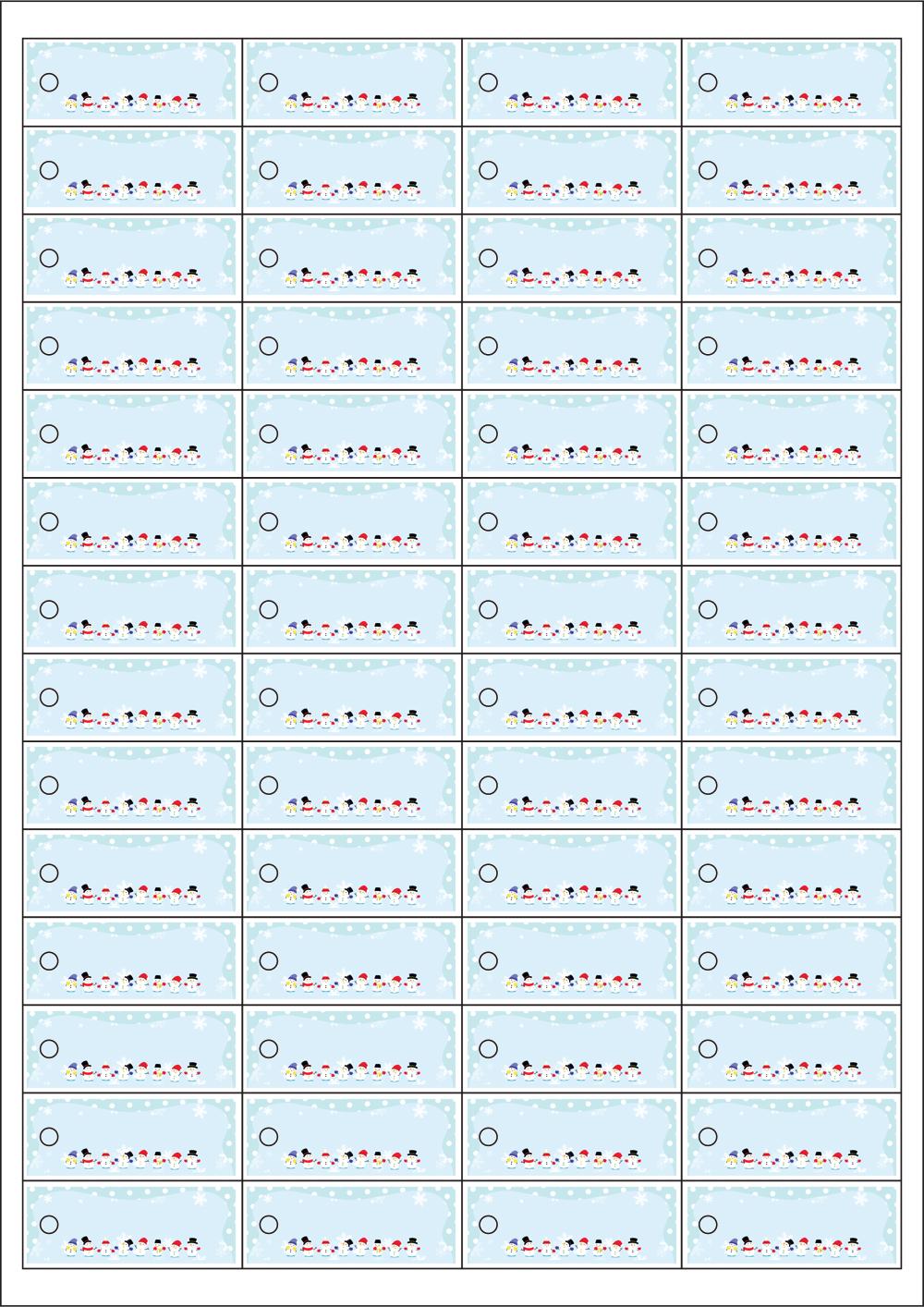 디자인된 A4 택 출력용 비점착 라벨, 규격코드: TLH0561, 디자인코드: DA1721(눈사람 다 모였네요), 50 x 20 (mm)