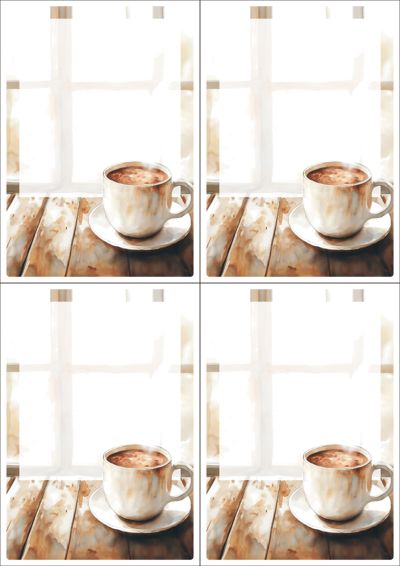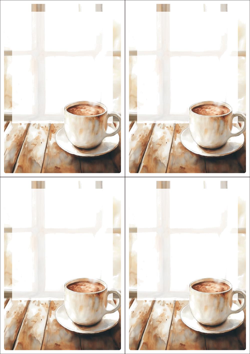 디자인된 A4 택 출력용 비점착 라벨, 규격코드: TLS0041, 디자인코드: DA1536(그 겨울의 찻집에서 생각나는 사람에게), 105 x 148.5 (mm)