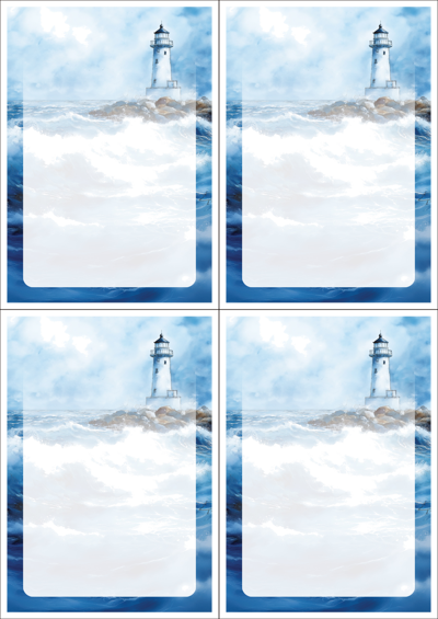 디자인된 A4 택 출력용 비점착 라벨, 규격코드: TLS0041, 디자인코드: DA1543(폭풍이 몰아치는 바닷가에서1), 105 x 148.5 (mm)
