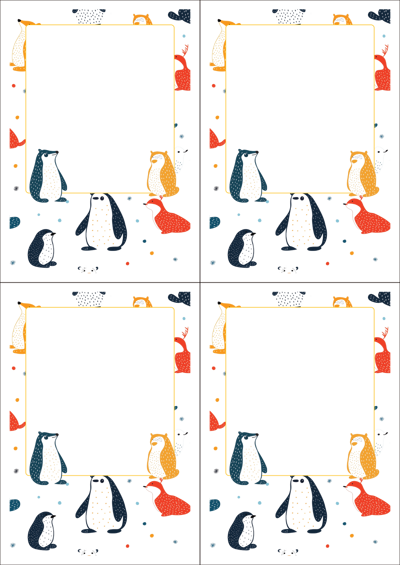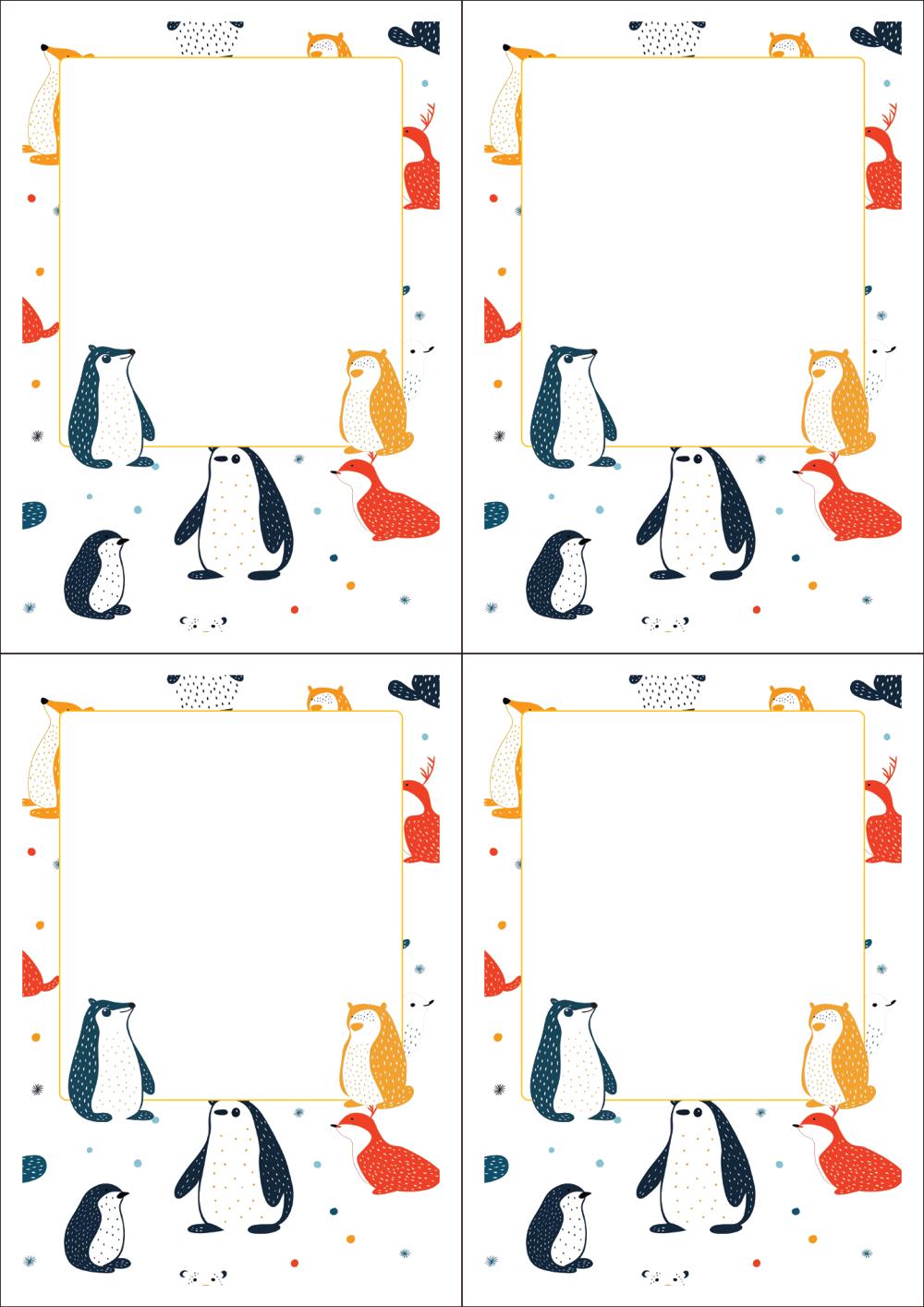 디자인된 A4 택 출력용 비점착 라벨, 규격코드: TLS0041, 디자인코드: DA1564(겨울 숲 동물들의 메세지), 105 x 148.5 (mm)