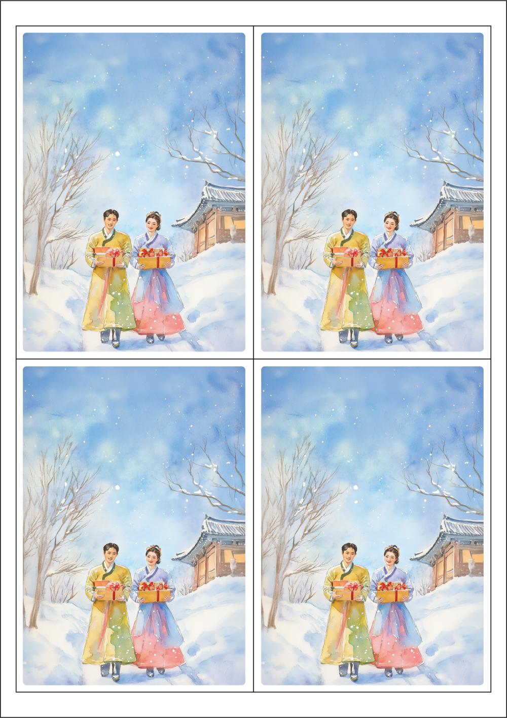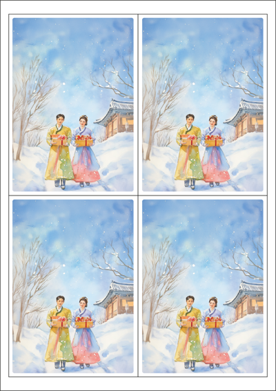 디자인된 A4 택 출력용 비점착 라벨, 규격코드: TLS0042, 디자인코드: DA1519(감사의 마음을 담은 선물을 드려요), 98.5 x 138 (mm)