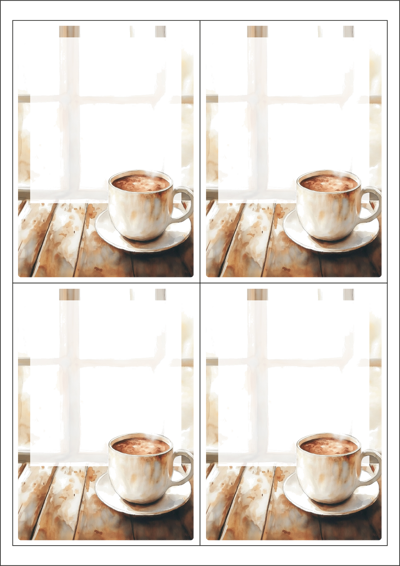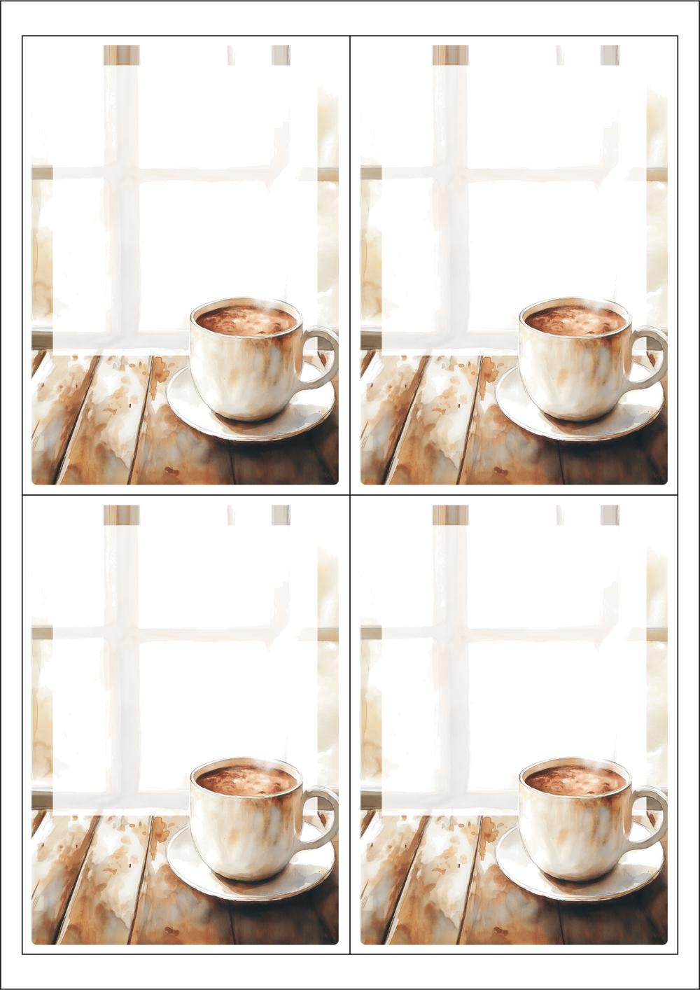 디자인된 A4 택 출력용 비점착 라벨, 규격코드: TLS0042, 디자인코드: DA1536(그 겨울의 찻집에서 생각나는 사람에게), 98.5 x 138 (mm)