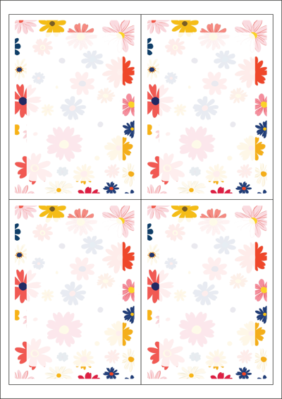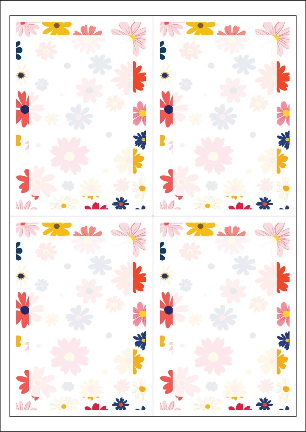 디자인된 A4 택 출력용 비점착 라벨, 규격코드: TLS0042, 디자인코드: DA1558(플라워 프레임2), 98.5 x 138 (mm)