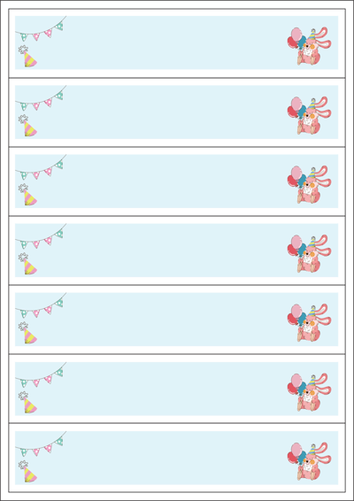 디자인된 A4 택 출력용 비점착 라벨, 규격코드: TLS0071, 디자인코드: DA1701(생일축하해요), 200 x 41 (mm)