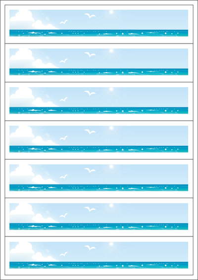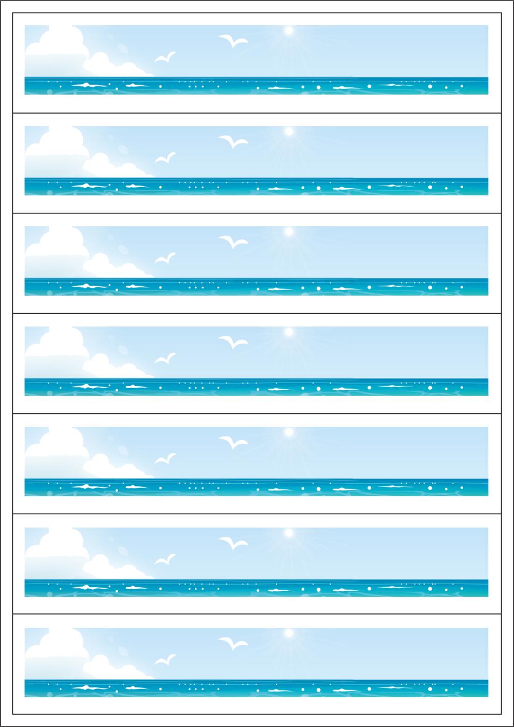 디자인된 A4 택 출력용 비점착 라벨, 규격코드: TLS0071, 디자인코드: DA1750(바닷가에서), 200 x 41 (mm)