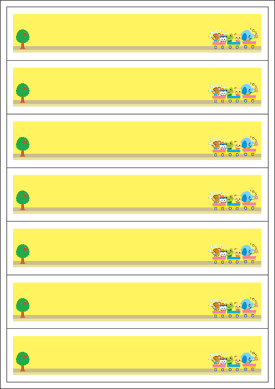 디자인된 A4 택 출력용 비점착 라벨, 규격코드: TLS0071, 디자인코드: DA1805(기차놀이), 200 x 41 (mm)