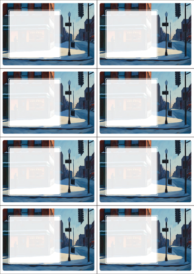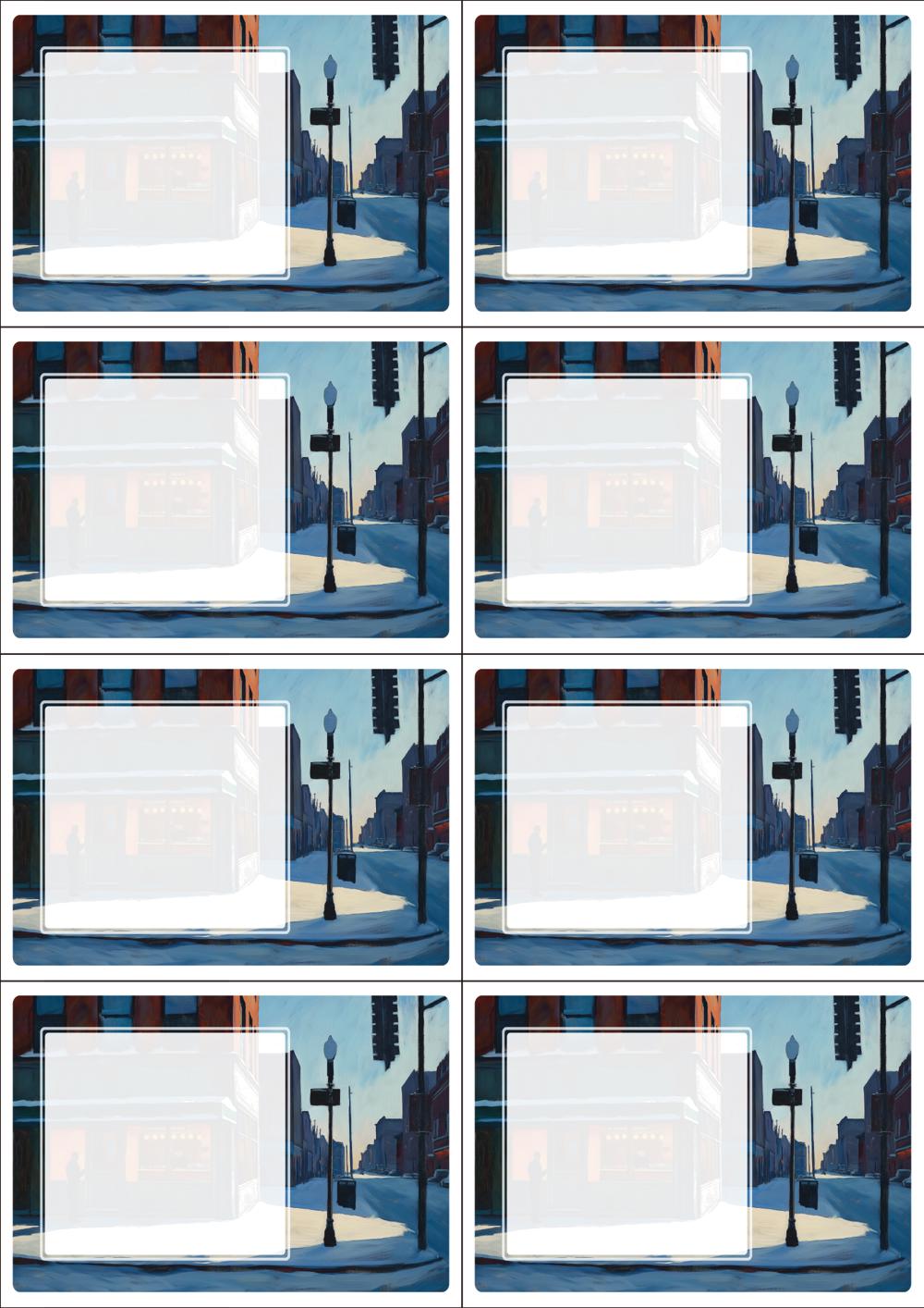디자인된 A4 택 출력용 비점착 라벨, 규격코드: TLS0081, 디자인코드: DA1540(한겨울 호퍼씨네 카페에서2), 105 x 74.25 (mm)
