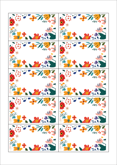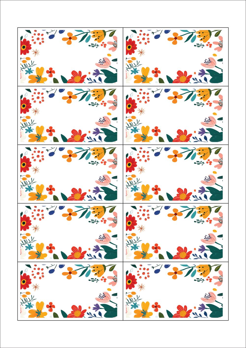 디자인된 A4 택 출력용 비점착 라벨, 규격코드: TLS0101, 디자인코드: DA1557(플라워 프레임1), 90 x 50 (mm)